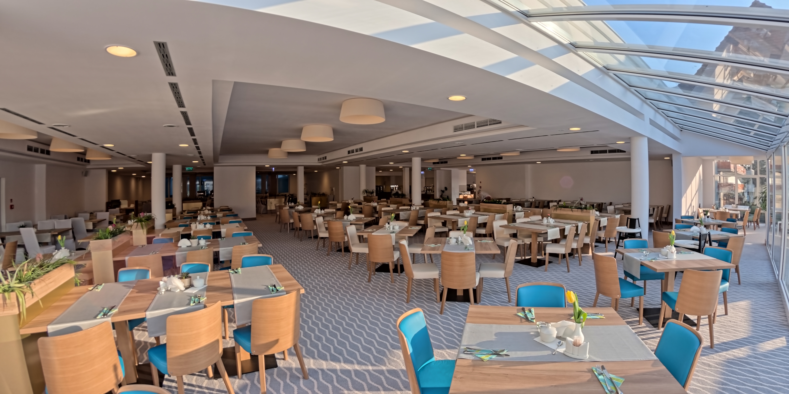 Na pierwszym piętrze hotelu znajdą Państwo restaurację "Fala", której ciepły i przyjazny wystrój zadowoli najbardziej wyszukane oczekiwania wszystkich Gości. W tym przestronnym miejscu serwowane są śniadania i obiadokolacje w formie bufetu, a każdy posiłek dodatkowo wzbogacony jest o dania przygotowywane na stacjach live cookingu. Restauracja "Fala" w swoich wnętrzach zmieści 480 osób.