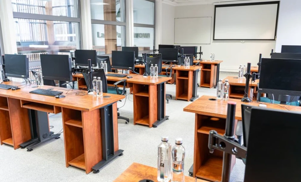 Sale zostały wyposażone w niezbędną infrastrukturę techniczną, obejmującą: