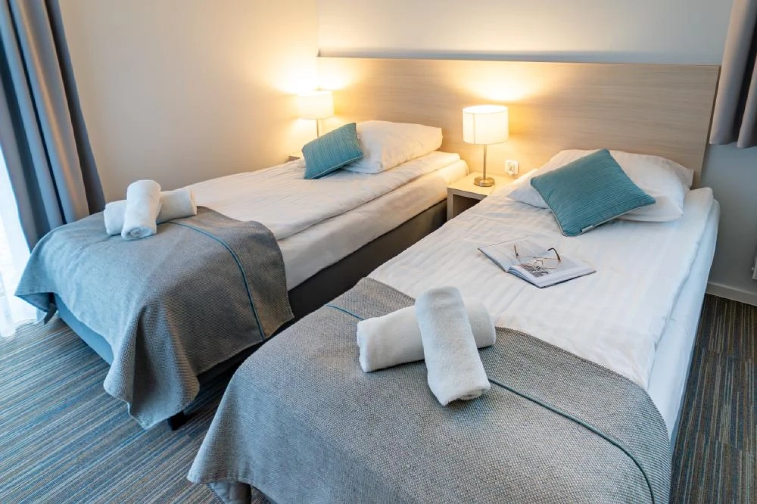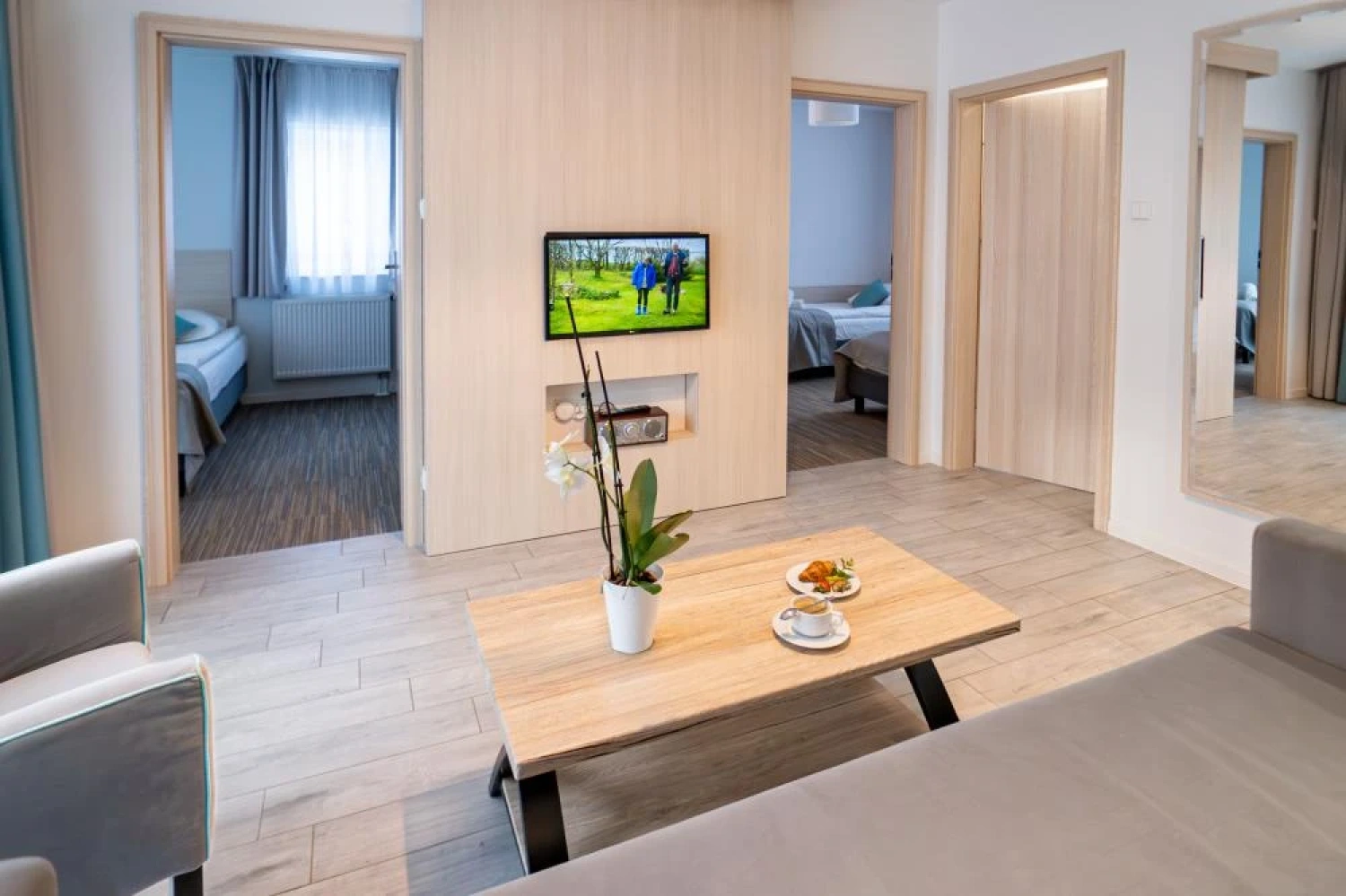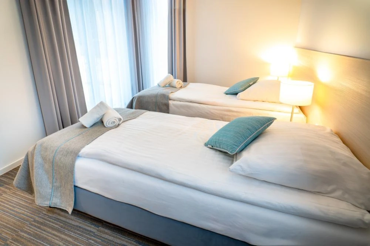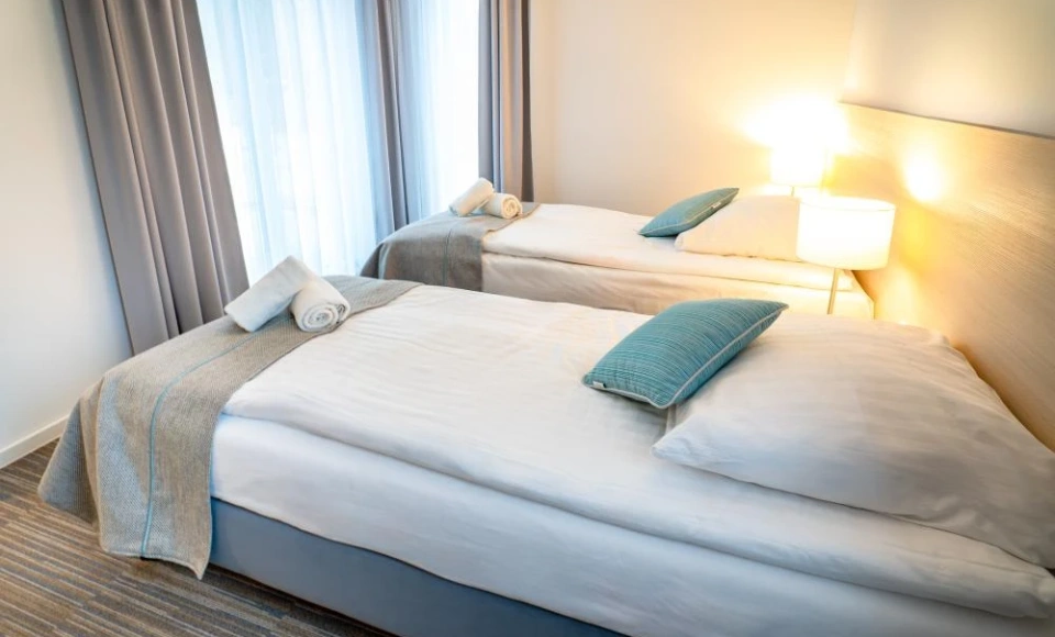 Wnętrza są funkcjonalne i utrzymane w nowoczesnej, stonowanej stylistyce, sprzyjającej wypoczynkowi po dniu spędzonym na plaży, spacerach lub zajęciach konferencyjnych. Każde miejsce noclegowe zostało wyposażone w podstawowe udogodnienia podnoszące komfort pobytu, w tym: