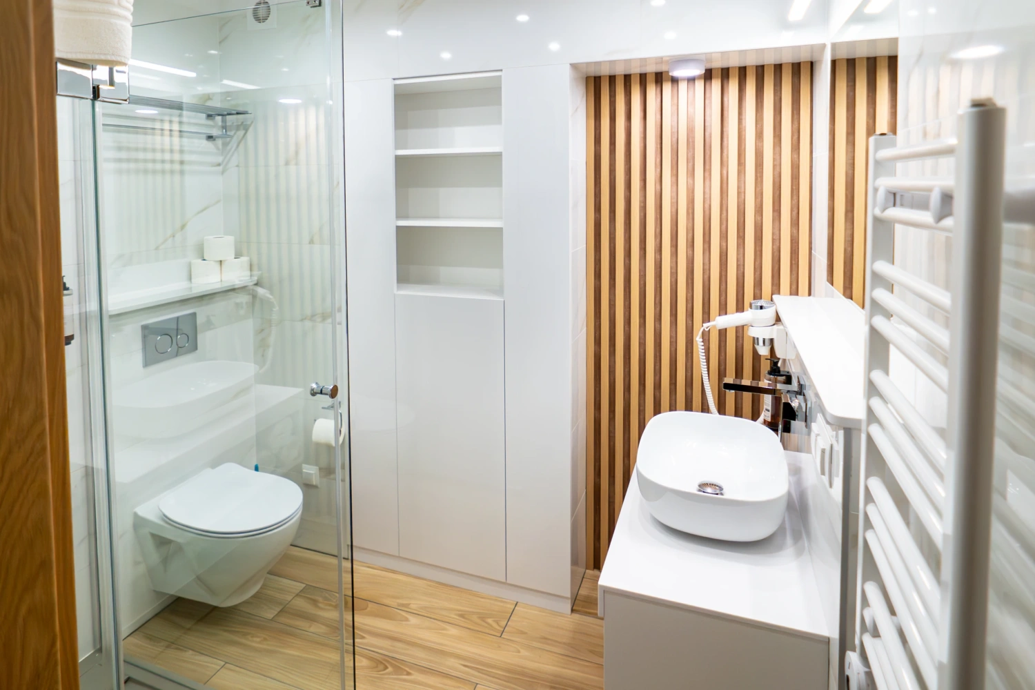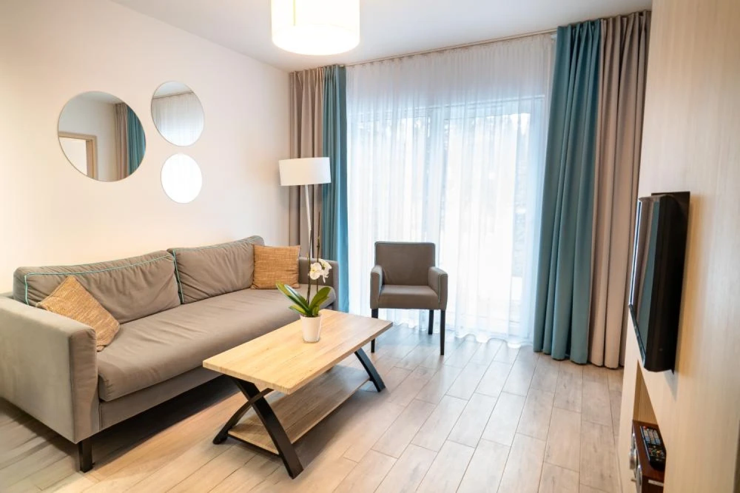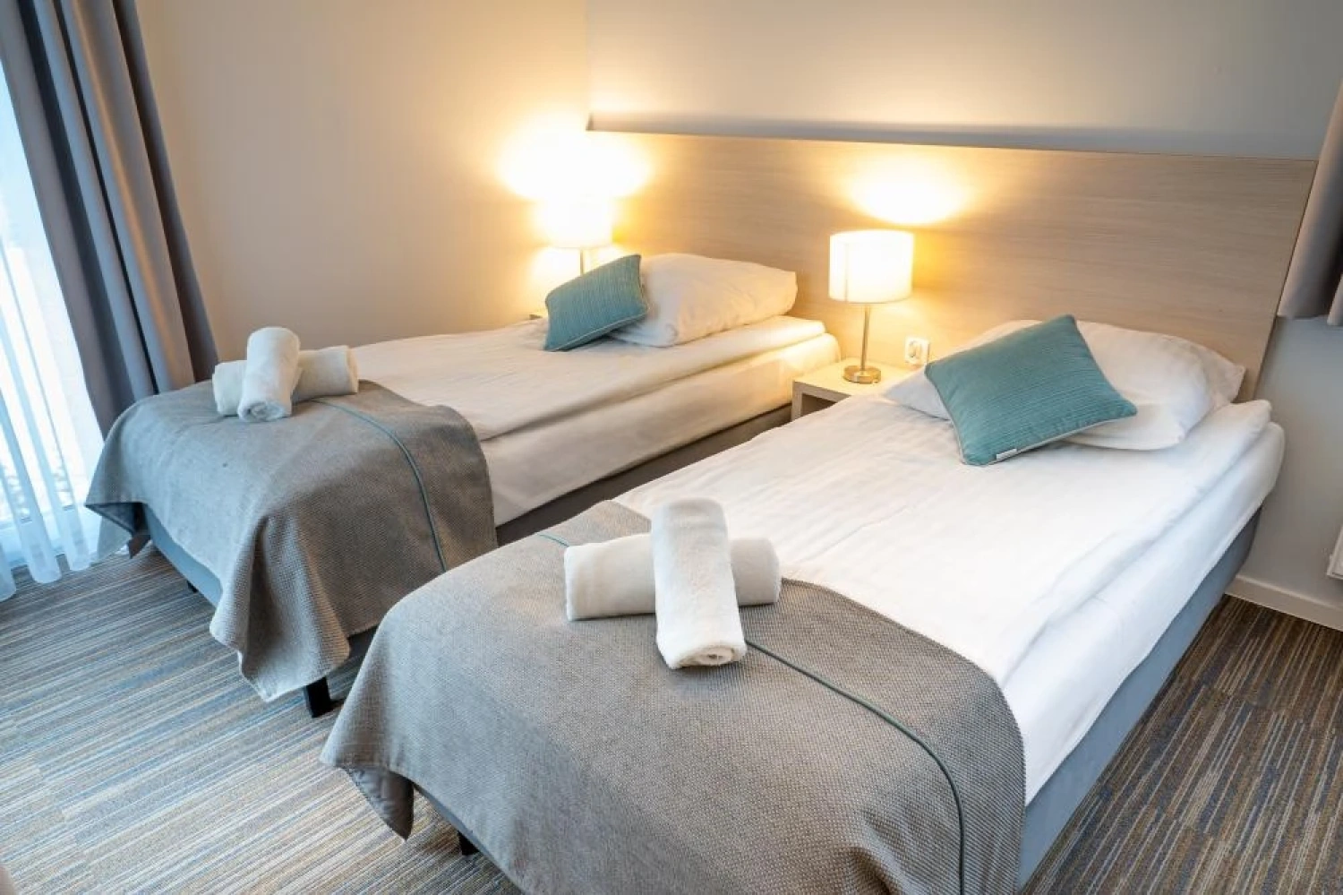 Wnętrza są funkcjonalne i utrzymane w nowoczesnej, stonowanej stylistyce, sprzyjającej wypoczynkowi po dniu spędzonym na plaży, spacerach lub zajęciach konferencyjnych. Każde miejsce noclegowe zostało wyposażone w podstawowe udogodnienia podnoszące komfort pobytu, w tym: