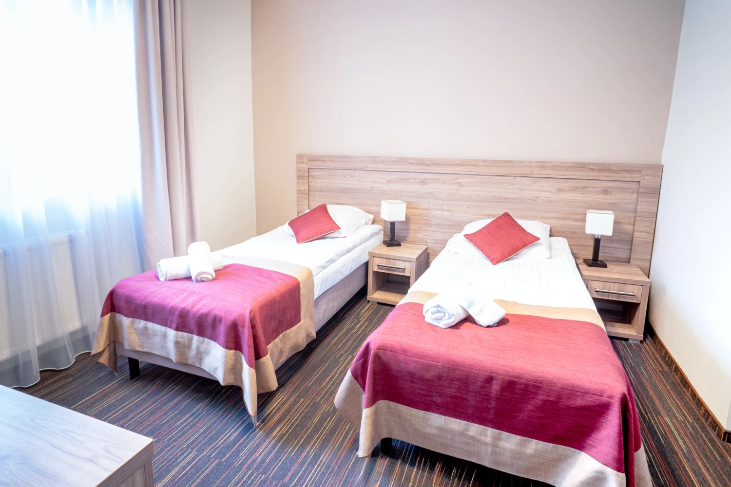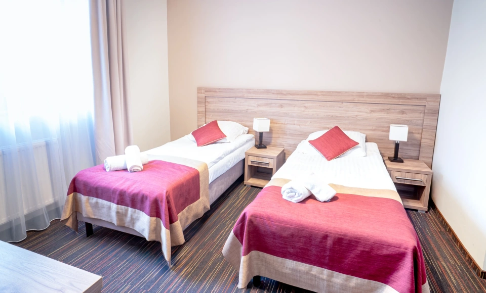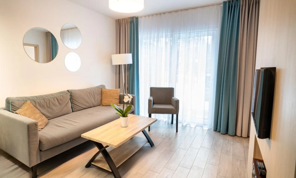 Do dyspozycji pozostają pokoje o zróżnicowanym standardzie oraz apartamenty, a także samodzielne domki, które sprawdzają się szczególnie przy pobytach integracyjnych, szkoleniowych i dłuższych wyjazdach.