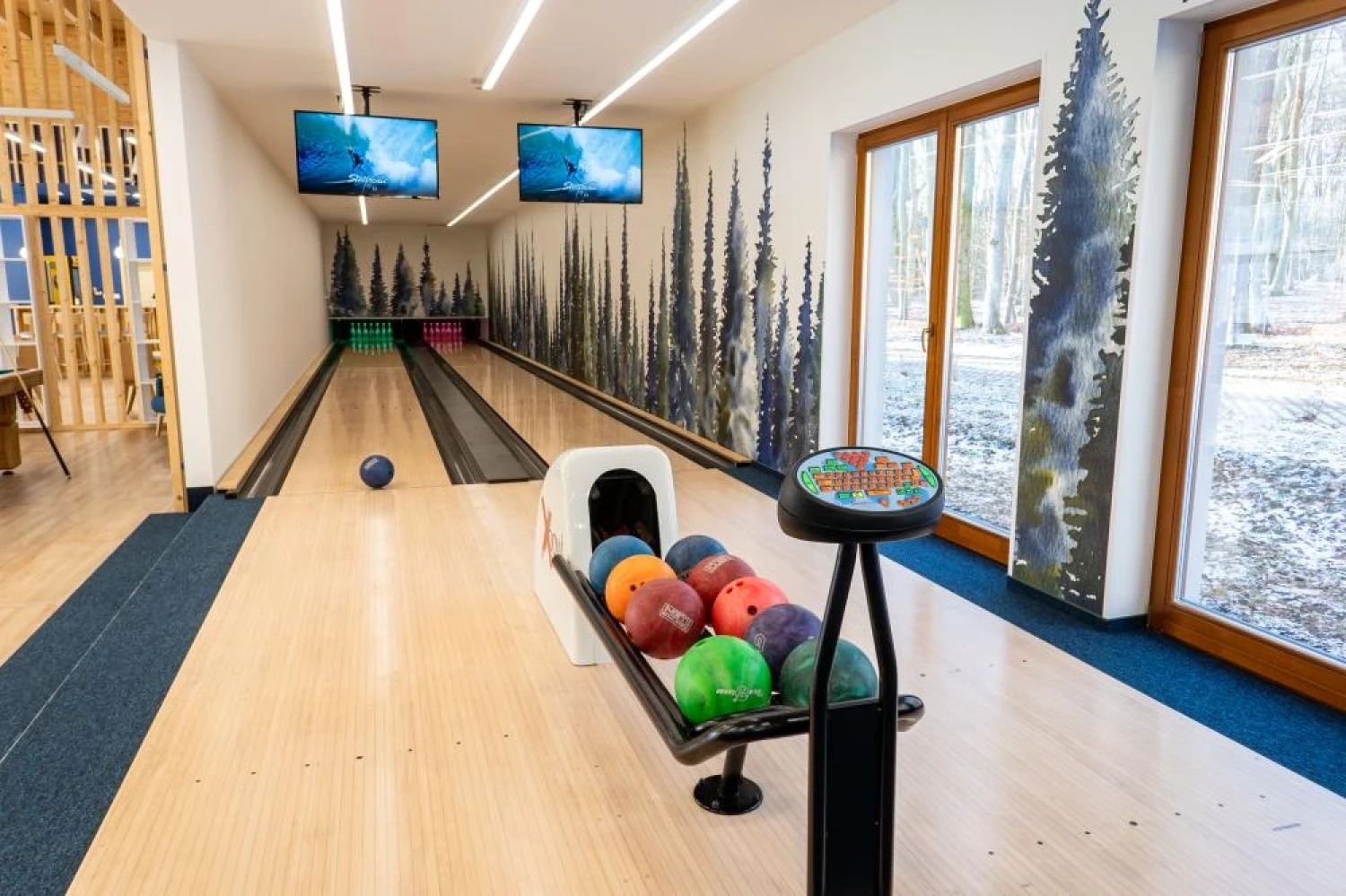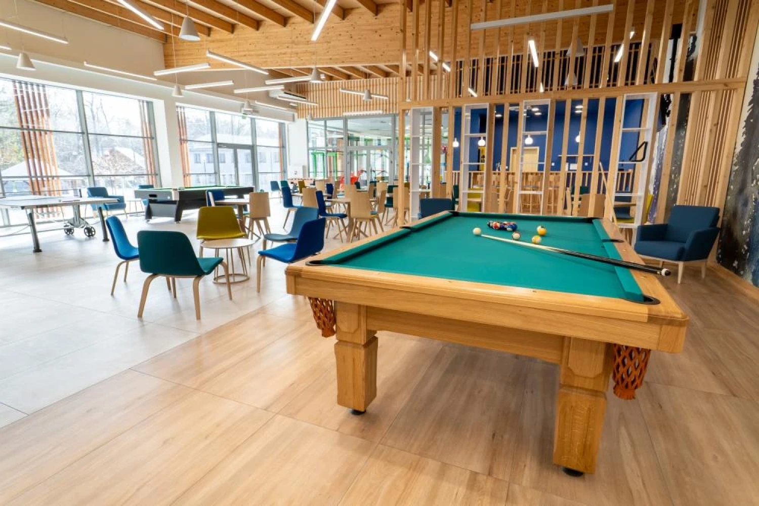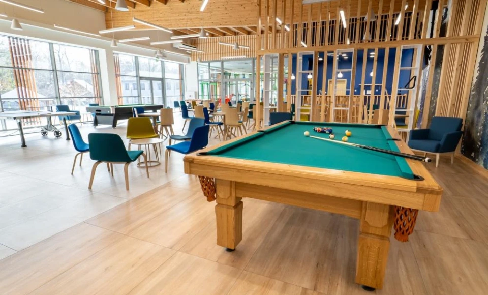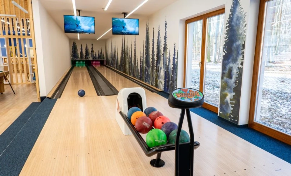 Na terenie obiektu dostępne są przestrzenie rekreacyjne sprzyjające integracji i aktywnemu spędzaniu czasu, w tym tory do kręgli, stół bilardowy, piłkarzyki oraz cymbergaj.