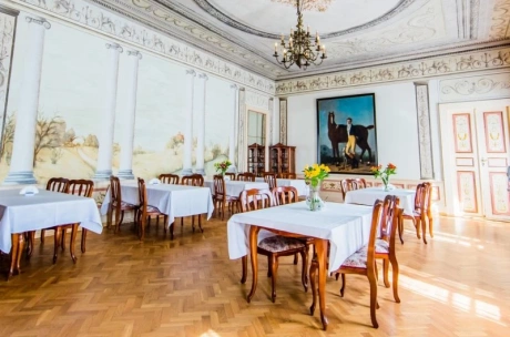 Goście do swojej dyspozycji mają 70 miejsc noclegowych, w tym 9 apartamentów i 4 pokoje w Pałacu oraz 17 stylowych pokojów w Starej Wozowni.