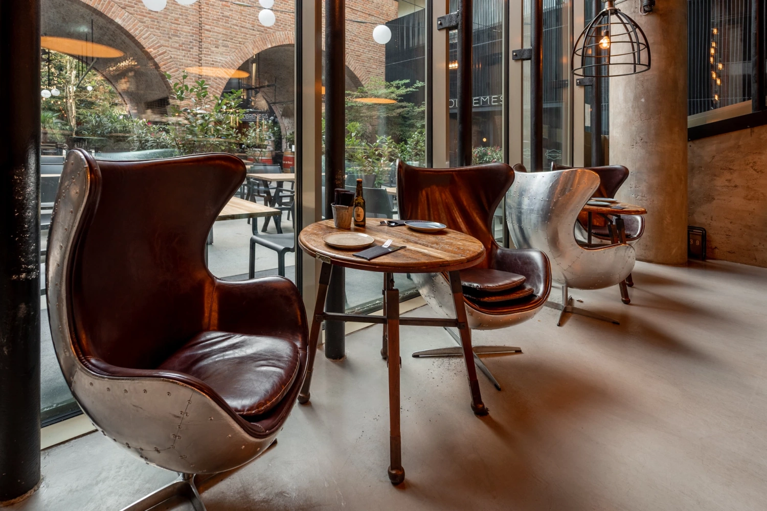 Przestrzeń restauracyjna składa się z kilku poziomów, które świetnie nadają się na organizację różnorodnych eventów. Na poziomie 0 znajduje się przestrzeń barowa, która jest centralnym punktem lokalu. Bar w industrialnym stylu otoczony jest wysokimi zbiornikami piwnymi, co nadaje mu charakteru typowego dla browarów rzemieślniczych. Może to być idealne miejsce na mniej formalne spotkania, degustacje piw, czy eventy koktajlowe i networkingowe.