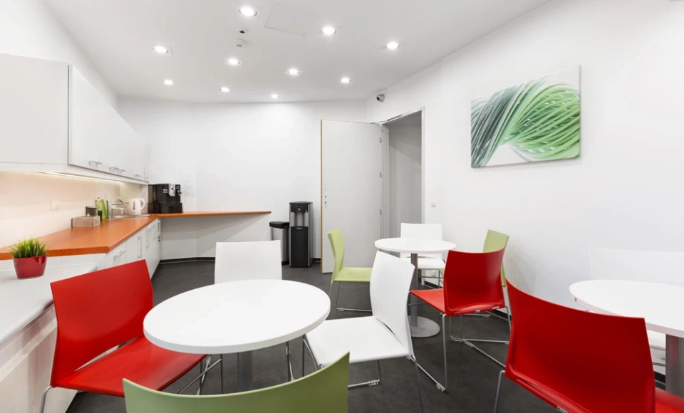 Użytkownicy Centrum Biznesowego Chmielna mają do dyspozycji również dobrze wyposażone aneksy kuchenne i miejsce do spokojnego zjedzenia posiłku.
