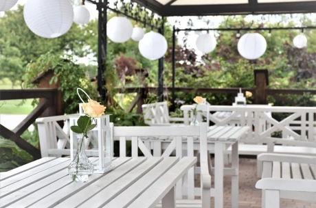 Dodatkowo, istnieje możliwość organizacji spotkań w Drewnianym Dworze, który stanowi odrębną przestrzeń. Jest to doskonałe miejsce do bardziej kameralnych spotkań lub rozmów w mniejszym gronie. W tyle tego budynku znajduje się romantyczny taras, który zapewnia wyjątkowe otoczenie i sprzyja długim, interesującym rozmowom.