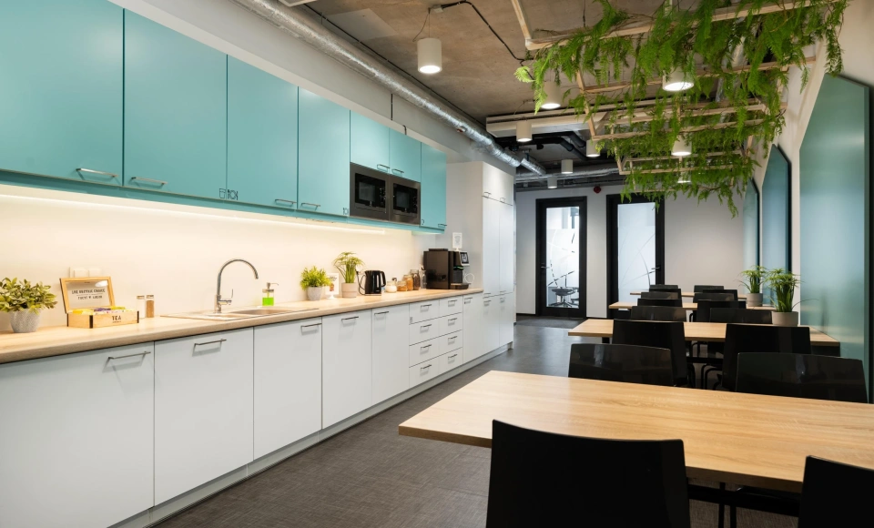 Druga lokalizacja mieści się w jednym z najbardziej nowoczesnych kompleksów biurowych w Warszawie, gdzie proekologiczne rozwiązania i unikalny ogród z oczkiem wodnym tworzą inspirującą atmosferę do pracy i spotkań.