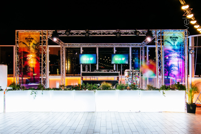 Dużym atutem klubu jest możliwość zorganizowania eventów na świeżym powietrzu. Na zewnątrz mieści się taras z barem, konsoletą DJ'a, wygodnymi miejscami do siedzenia i zachwycającym widokiem na panoramę Warszawy. Do dyspozycji gości jest taras otwarty. W sezonie letnim na tarasie przygotujemy event nawet dla 300 osób.