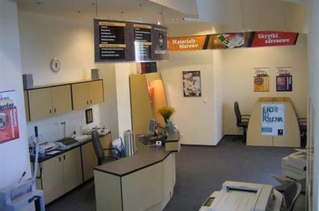 Na miejscu możesz skorzystać z Centrum Poligraficznego, które świadczy m.in. takie usługi, jak drukowanie, kserowanie, bindowanie czy laminowanie dokumentów, wytwarzanie stempli, faks.