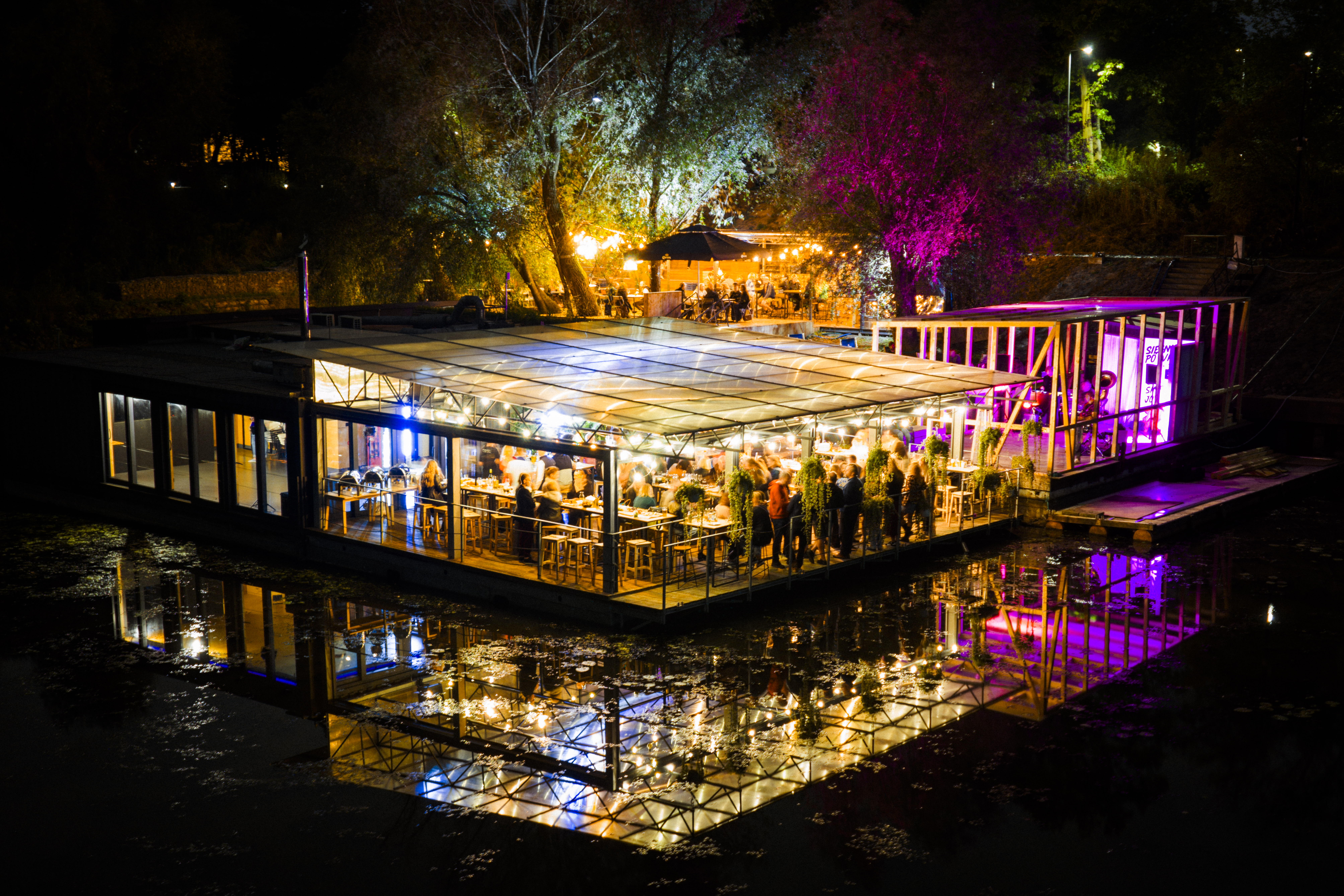 Restauracja MIEJSCE to wyjątkowa przestrzeń eventowa w sercu Portu Czerniakowskiego w Warszawie - połączenie industrialnego stylu, natury i niepowtarzalnego klimatu nad Wisłą. Zbudowana z kontenerów morskich i unosząca się na wodzie, stanowi oryginalną scenerię dla wydarzeń, które zostają w pamięci na długo.