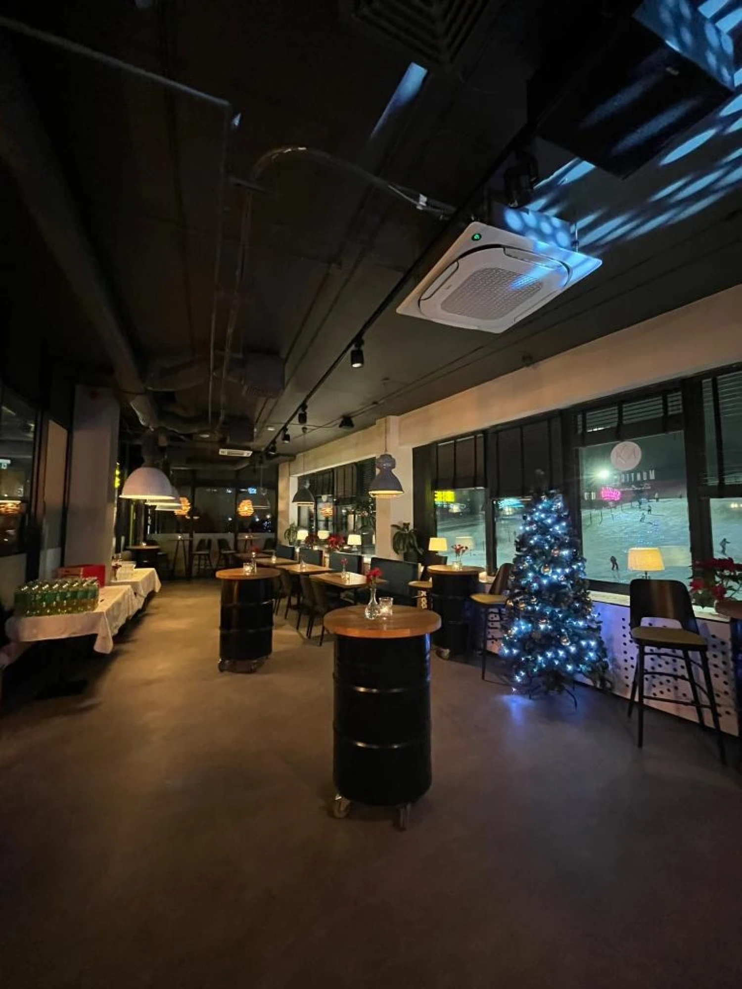 Dodatkowym atutem jest taras o powierzchni 50–60 metrów kwadratowych, w całości zabudowany i przeszklony. Idealnie nadaje się na spotkania w formie standing party, prezentacje czy konferencje sprzedażowe, a jego przestronny i nowoczesny charakter umożliwia wiele aranżacji.