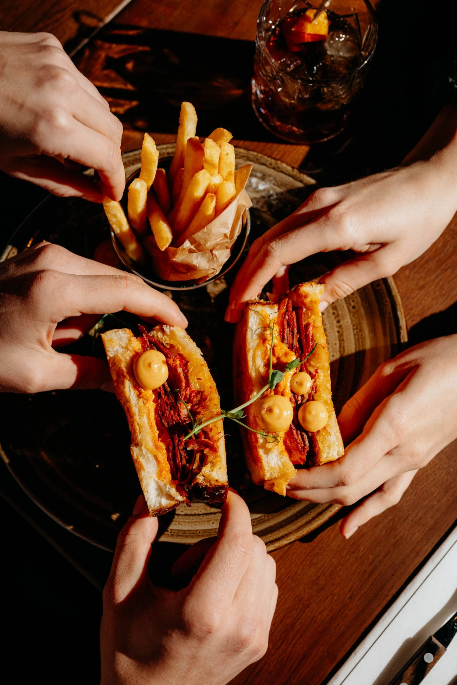 Menu opiera się na nowoczesnej kuchni amerykańskiej. Dania są efektowne, dobrze sprawdzają się przy eventach i spotkaniach biznesowych. Jedzenie jest konkretne, nowoczesne i zwyczajnie bardzo dobre, więc goście zazwyczaj wychodzą naprawdę zadowoleni.