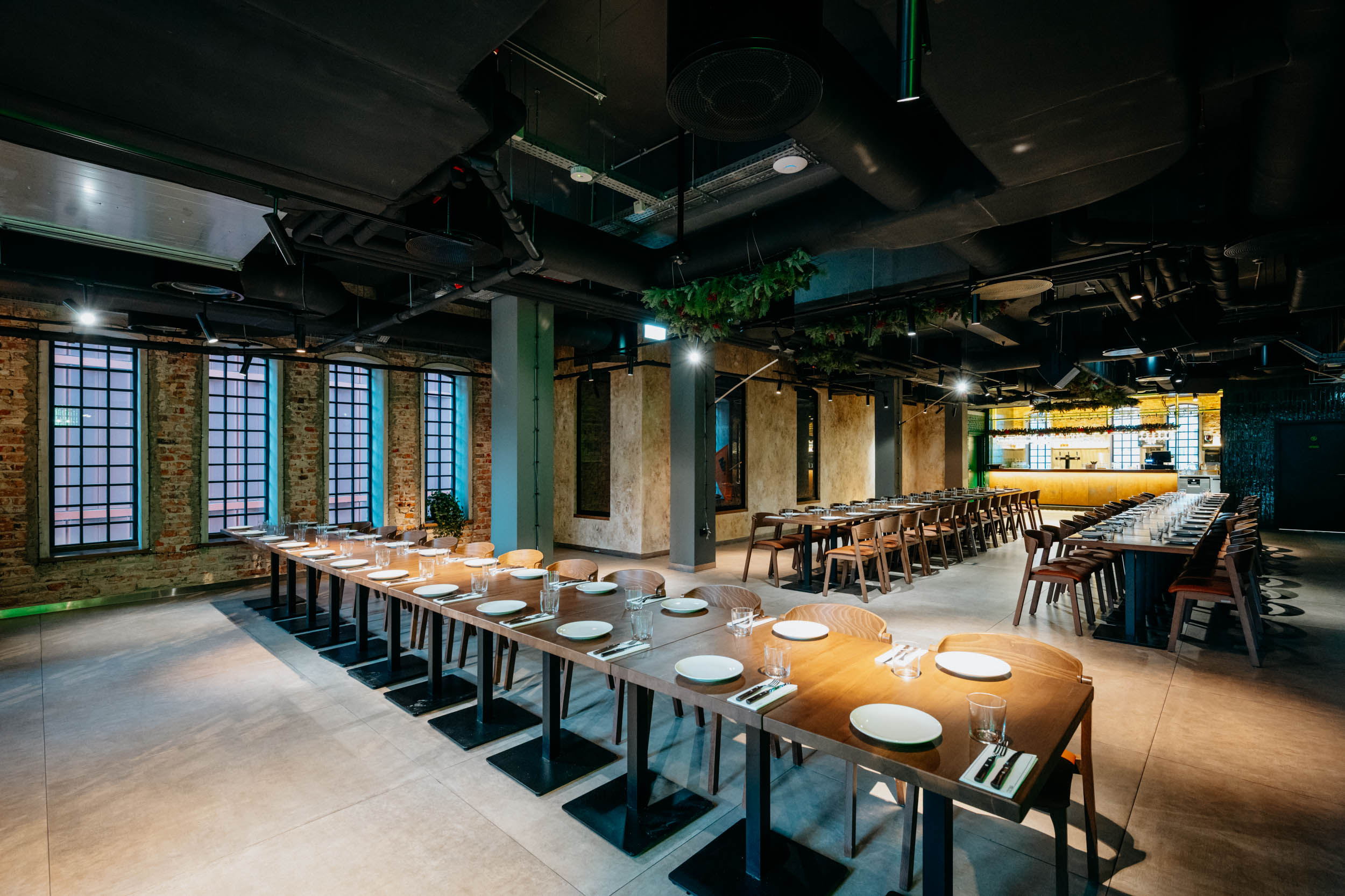 Restauracja mieści się w samym sercu kompleksu Browary Warszawskie, w zabytkowym budynku dawnej Warzelni. To wyjątkowe miejsce na mapie miasta - industrialna architektura połączona z nowoczesnym designem robi bardzo dobre wrażenie na gościach wydarzeń.