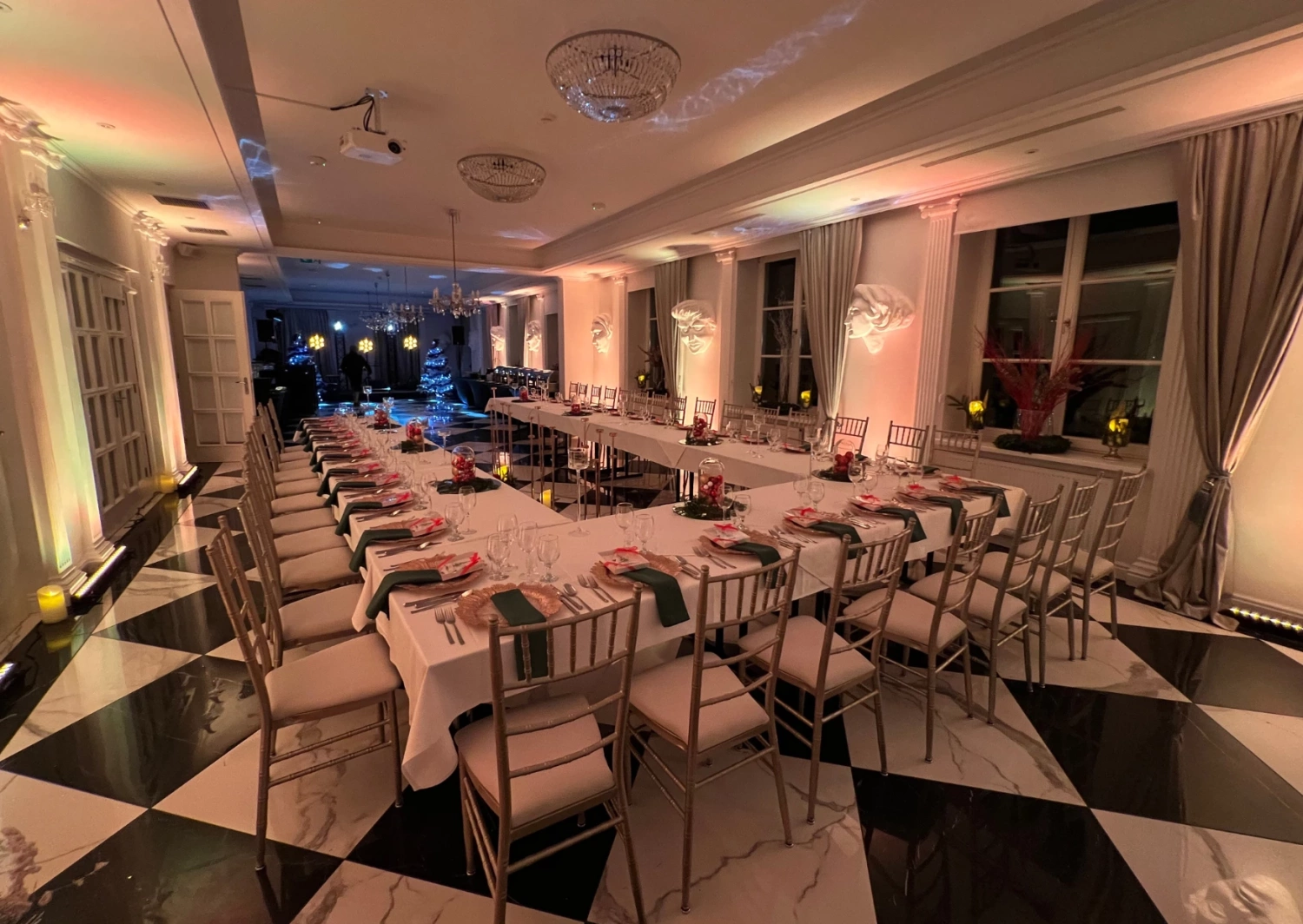 Hotel dysponuje wieloma różnorodnymi salami eventowymi, które mogą pomieścić zarówno mniejsze, kameralne spotkania, jak i większe, reprezentacyjne wydarzenia do 180 osób. Te eleganckie i przestronne sale zostały zaprojektowane z myślą o dostarczeniu idealnej przestrzeni do organizacji uroczystości, przyjęć czy gal. Zjawiskowa aranżacja wnętrz, wysokie sufity, piękne detale i starannie dobrane meble tworzą wyjątkową atmosferę, która z pewnością zapadnie w pamięć uczestnikom.