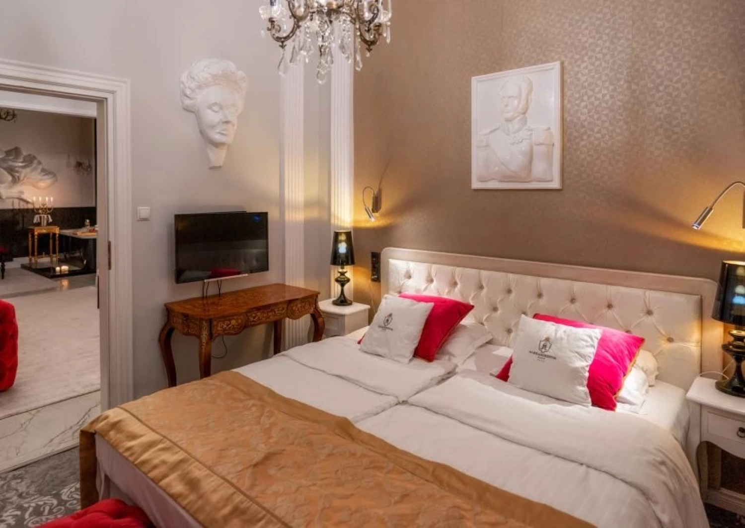 Pokoje w pałacu to prawdziwa uczta dla zmysłów. Zachwycają one swoją elegancją i historycznym urokiem. Zaprojektowane z dbałością o szczegóły, urzekają antycznymi meblami, klasycznymi elementami wystroju i pięknymi zdobieniami. Wnętrza pałacowych pokoi emanują atmosferą luksusu, tworząc niepowtarzalne doświadczenie dla gości.