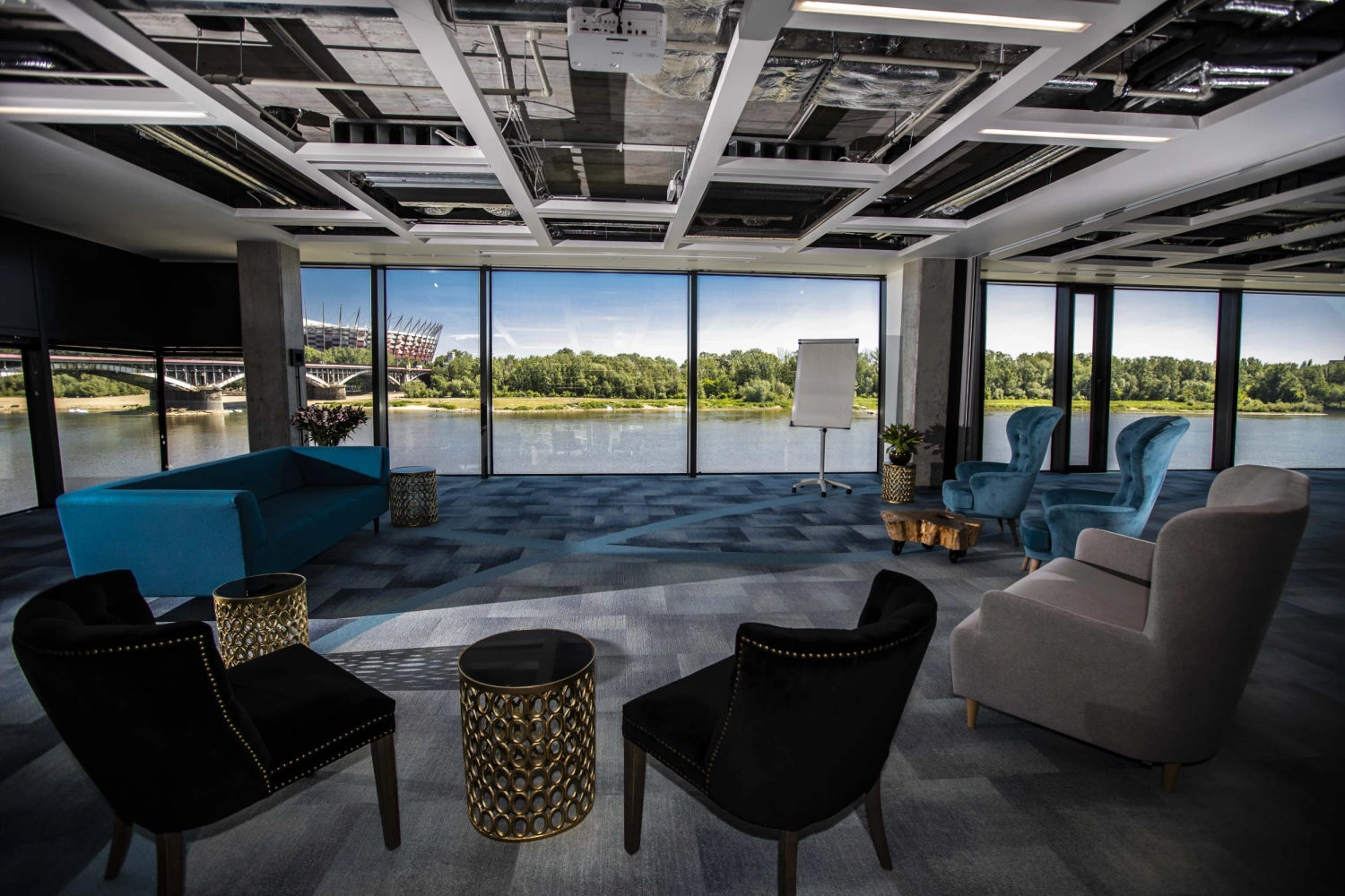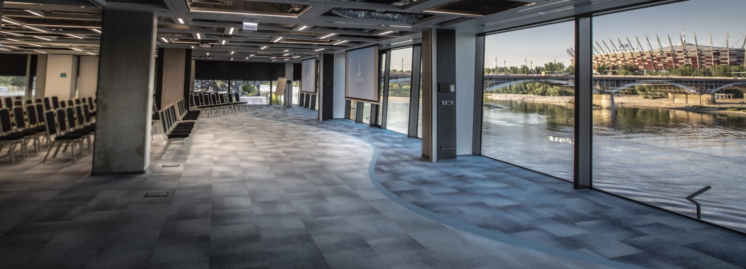 Zorganizuj wydarzenie w wyjątkowej przestrzeni zlokalizowanej na 2. poziomie nowoczesnego budynku The Tides. Z panoramicznymi widokami na Wisłę i Stadion Narodowy, to miejsce łączy nowoczesność, elegancję i industrialny charakter z kameralną i dyskretną atmosferą.