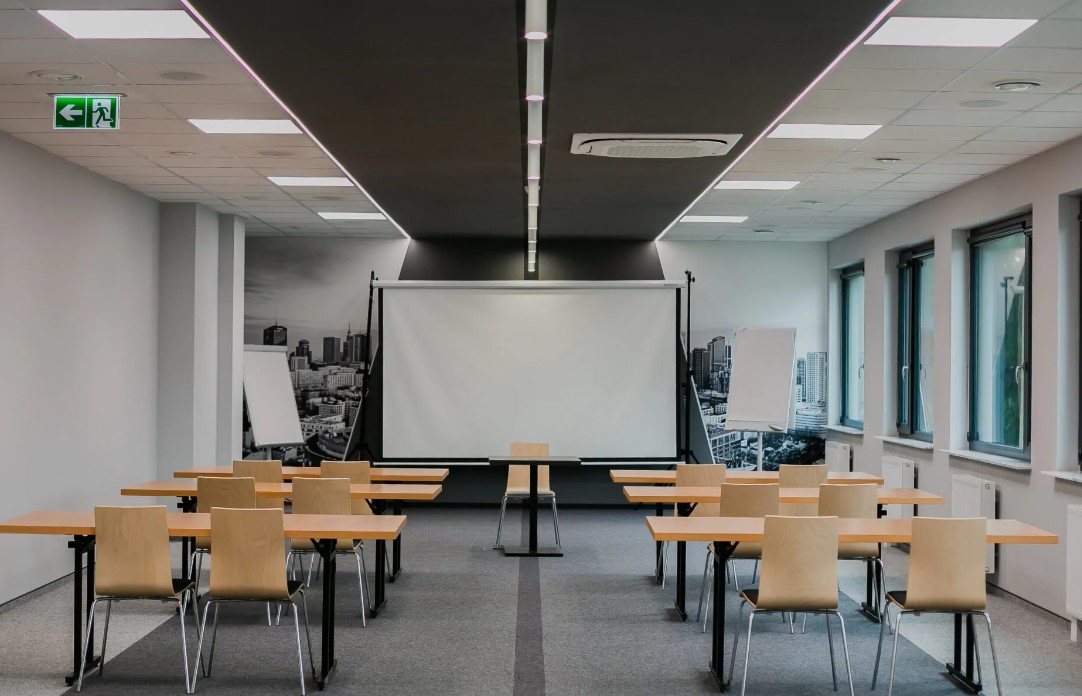 Wszystkie sale wyposażone są w projektor multimedialny, flipcharty, profesjonalne nagłośnienie, sterowaną klimatyzację oraz szybkie łącze internetowe.