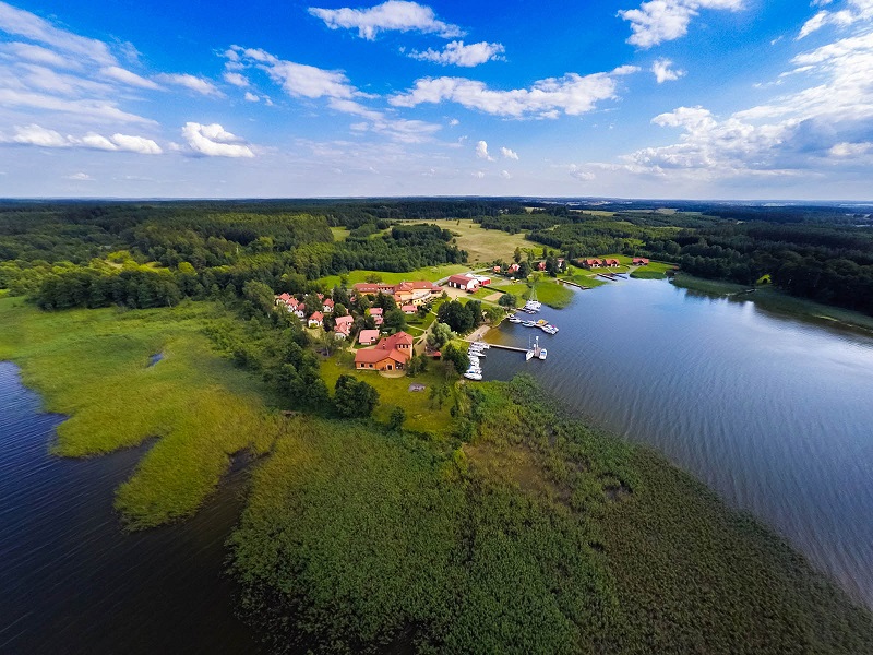- 15 przestronnych całorocznych bungalowów, które doskonale sprawdzają się dla większych grup osób, np. podczas wyjazdu integracyjnego lub firmowego. To odpowiednie miejsce dla osób ceniących sobie luźną i kameralną atmosferę. Goście mają do dyspozycji domki 3-, 4-, 5- i 6-osobowe o różnym standardzie. Dodatkowo każdy bungalow ma taras wyposażony w komplet mebli ogrodowych. Kominek jest niewątpliwym atutem, który urozmaica każdy wieczór.