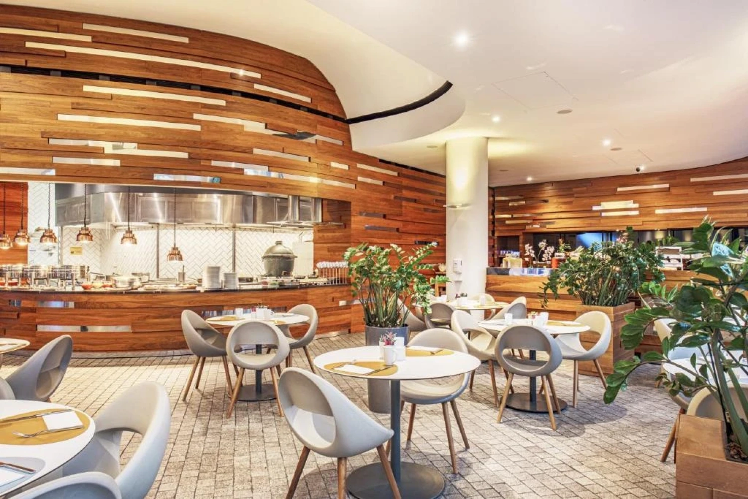 Tak — hotel ma własną restaurację (OVO) serwującą kuchnię międzynarodową i lokalną.