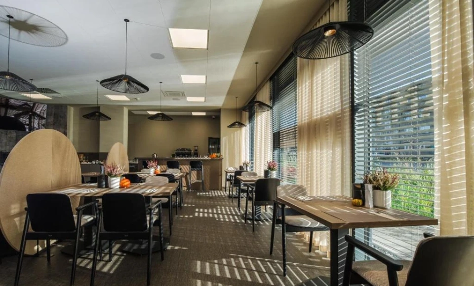 Restauracja MODRA to integralna część obiektu, oferująca kuchnię opartą na nowoczesnej interpretacji polskich smaków. Menu tworzone jest z naciskiem na jakość produktów, sezonowość oraz spójną koncepcję kulinarną. Za kuchnię odpowiada szef kuchni Przemysław Szwak, którego doświadczenie i rzemieślnicze podejście przekładają się na dopracowane dania o wyrazistym, ale wyważonym charakterze. Restauracja sprawdzi się zarówno podczas posiłków dla gości hotelowych, jak i jako miejsce spotkań biznesowych przy lunchu lub kolacji.