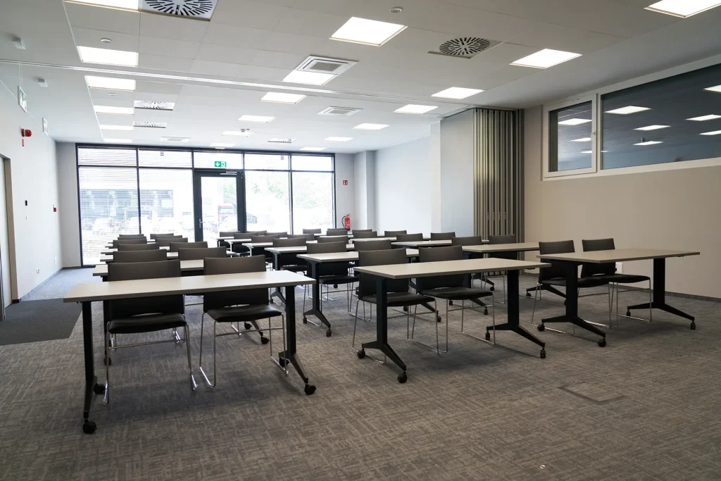 Dwie mniejsze sale sprawdzają się podczas spotkań zarządczych, warsztatów i szkoleń dla maksymalnie 20 osób. Duża sala konferencyjna umożliwia organizację konferencji, prezentacji oraz spotkań firmowych dla grup do 60 uczestników. Wszystkie sale wyposażone są w zaplecze multimedialne oraz szybki dostęp do internetu.