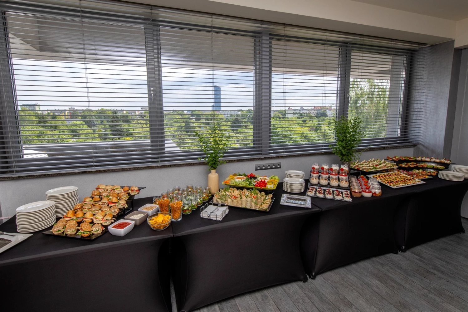Dodatkowo dla uczestników dostępny jest duży hol, a także balkon i taras, które stanowią idealne miejsce na przerwę, umożliwiając zaczerpnięcie świeżego powietrza i chwilę relaksu w trakcie spotkania.