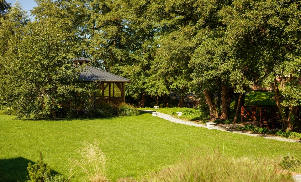 Wszystkie aktywności odbywają się w zielonej, spokojnej scenerii, sprzyjając integracji zespołu i równowadze między pracą a relaksem.