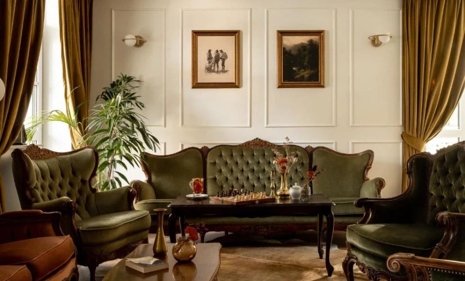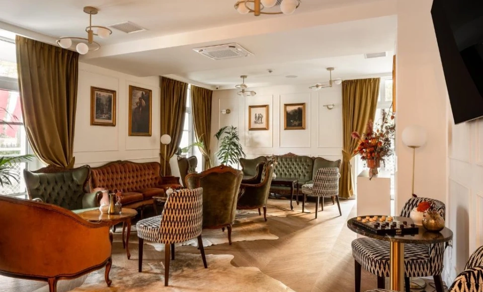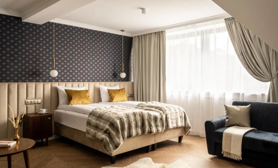 Wnętrza obiektu utrzymane są w eleganckiej estetyce nawiązującej do epoki art déco, gdzie klasyczne linie i szlachetne materiały harmonizują z elementami inspirowanymi kulturą i twórczością regionu. Starannie dobrane dekoracje podkreślają artystyczny klimat miejsca, nadając każdej przestrzeni indywidualny, dopracowany charakter.