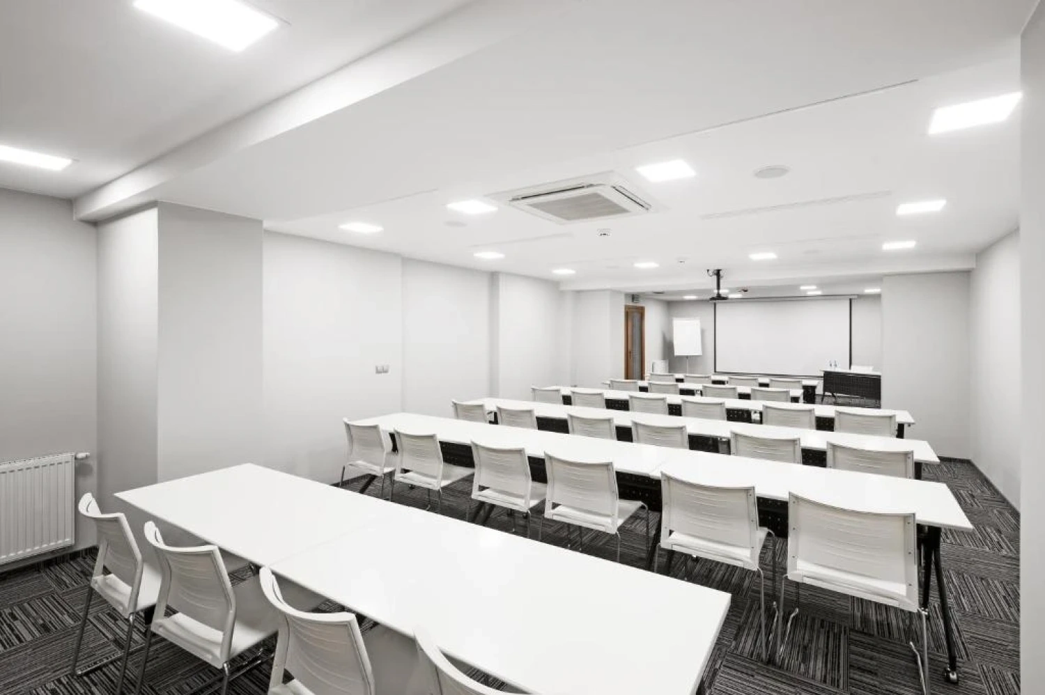 Na miejscu dostępne są również standardowe narzędzia wspierające prowadzenie spotkań - flipcharty, wskaźniki oraz niezbędne materiały do prezentacji.