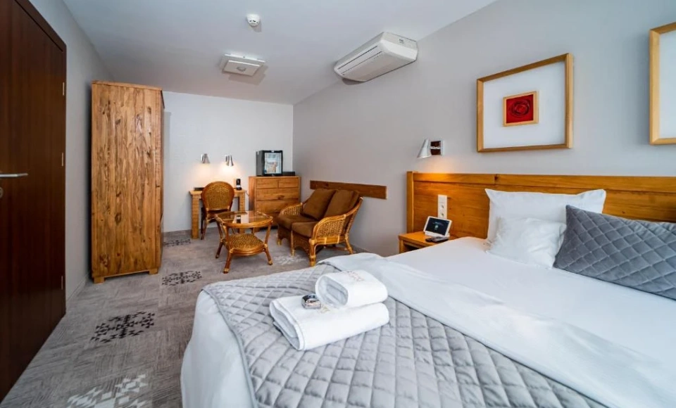 Baza noclegowa w Hotelu Żywiecki Medical Spa & Sport obejmuje 24 pokoje oraz 6 apartamentów o dopracowanym, autorskim designie. To kameralna liczba, która przekłada się na większy komfort pobytu i poczucie prywatności.