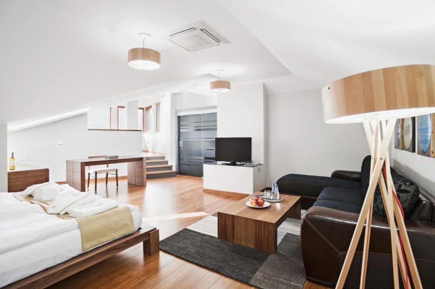 Wszystkie wnętrza zostały wyposażone w eleganckie meble z litego dębu chilijskiego. To ręcznie wykonane realizacje najlepszych stolarzy - surowa, naturalna forma drewna została tu zestawiona z wysokim standardem wykończenia.